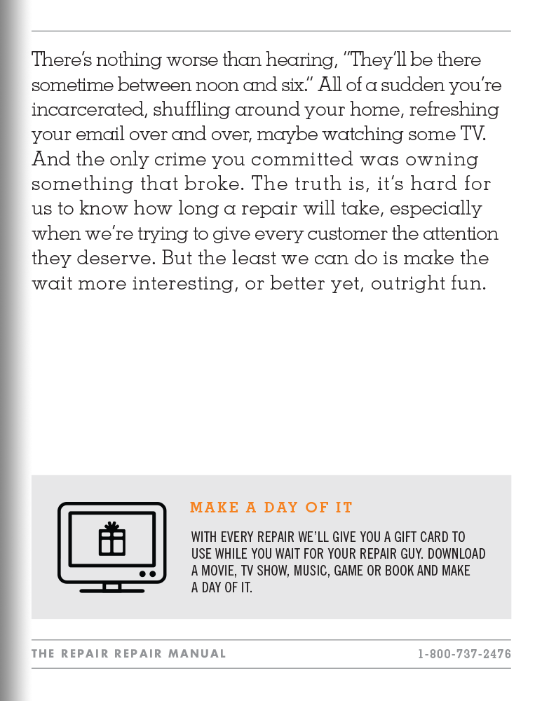 After you read this book, you’ll feel much better about a complete stranger crawling around on your kitchen floor. And so did Repair.com’s audience. Service calls increased 600%.