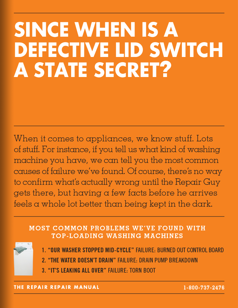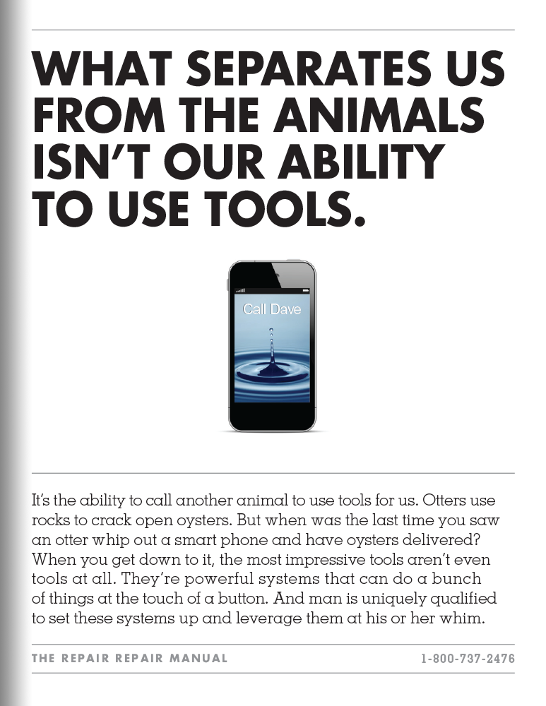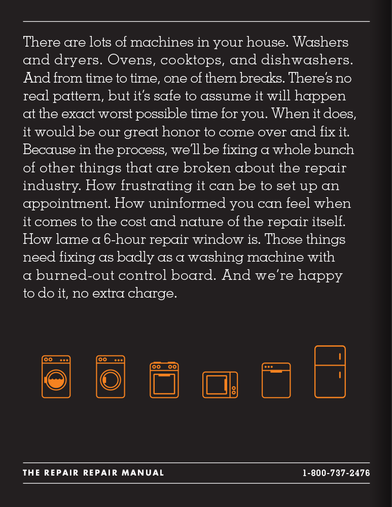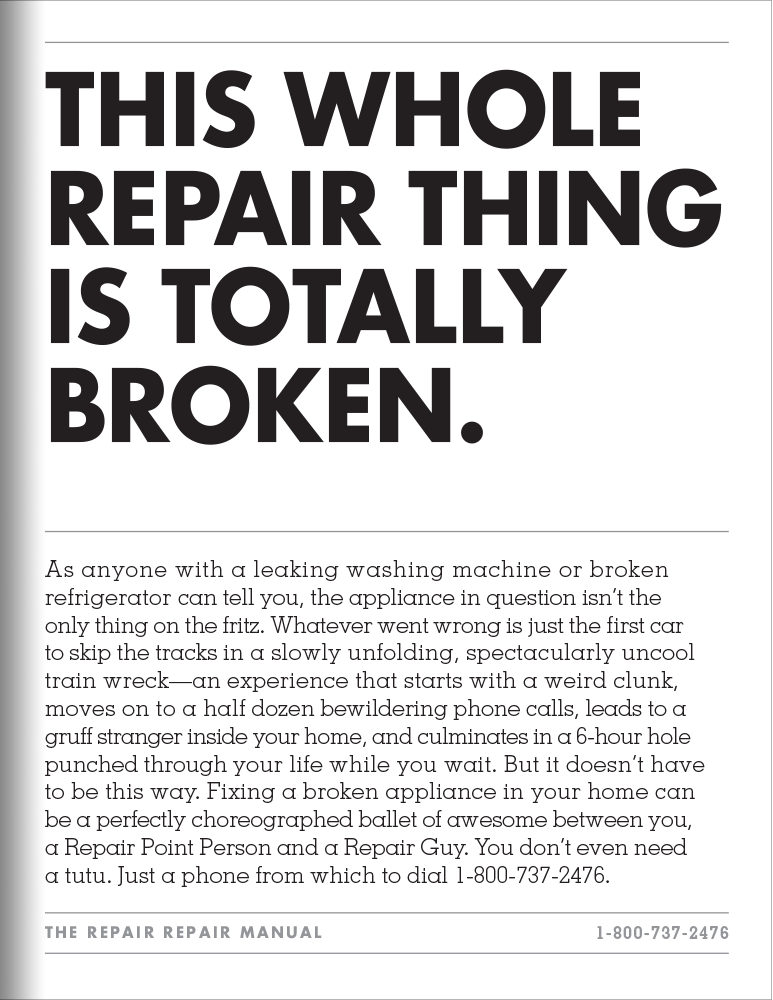 The butt crack. The creepy, windowless van. The wondering if the guy is even going to show up. We weren’t surprised to hear the entire appliance repair experience was broken. So, instead of just fixing appliances, we invented a brand that would fix the repair industry. And we built it from scratch, from brand identity to an entire integrated campaign. In the end, visits to Repair.com increased 129% and awareness went up 500%.